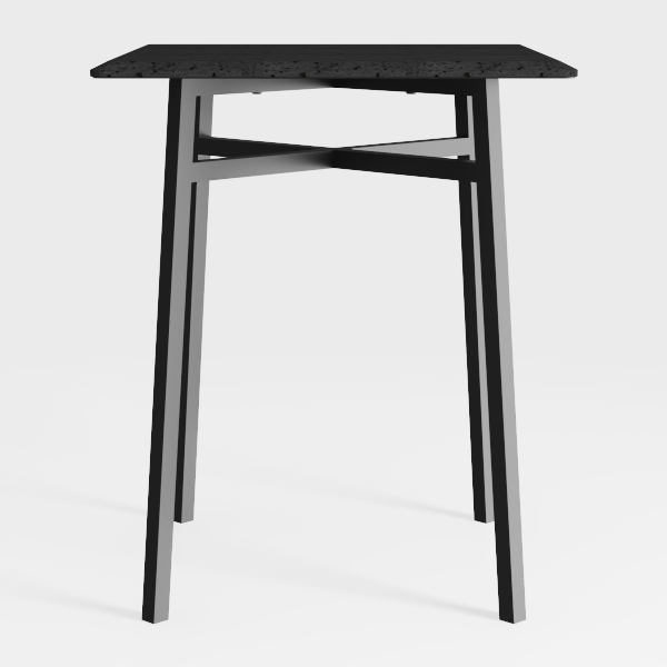 Visually, the matte black tabletop exudes understated sophistication, with a subtle, textured surface that catches light gently, avoiding the coldness of polished finishes. It feels warm to the touch, as if crafted from a solid material like reclaimed wood or high-quality composite, with a smooth yet not overly glossy texture that balances durability and comfort. The slender, tapering legs, in a muted silver-gray metal, feature an elegant X-shaped crossbar at the base, creating a sense of lightness while ensuring unwavering stability—even when loaded with a stack of cookbooks or a vase of fresh flowers, it remains steady and unshakable.