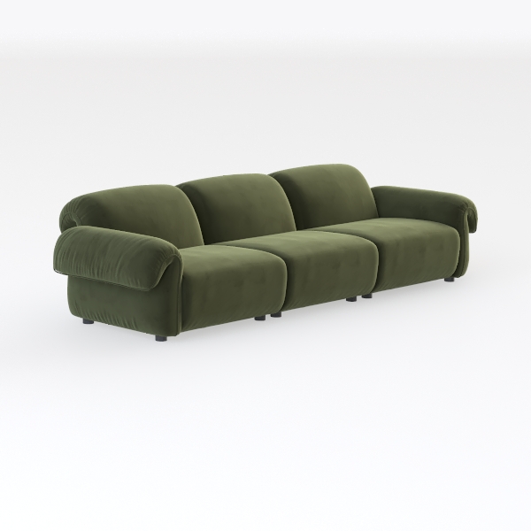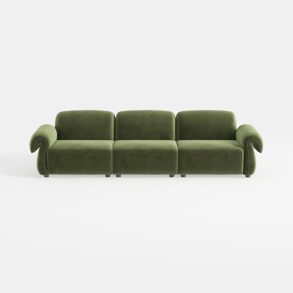 Crafted from organic curves and mid-century design principles, this sofa embodies calm sophistication with timeless charm. Inspired by natural forms, its silhouette balances playful warmth and understated elegance—rounded armrests and a streamlined three-segment design feel approachable, while the low, grounded stance keeps the piece stable and uncluttered.