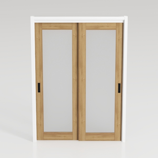 Inspired by natural wood grain and minimalist design, this double door blends warmth with simplicity. Its smooth, light wood texture and crisp white frame create a bright, airy look, enhancing spaces with subtle elegance. Ideal for modern or Scandinavian homes, it suits light-filled living rooms or bedrooms, pairing beautifully with white walls and neutral textiles. The sliding design saves space, while frosted glass ensures privacy, balancing practicality and aesthetic appeal.