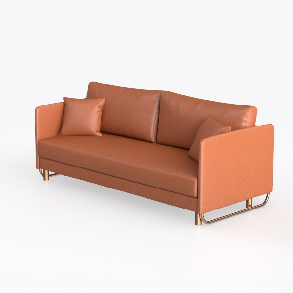 This elegant sofa embodies a design philosophy rooted in the harmony of nature and modern minimalism. Drawing inspiration from the soft, warm hues of a sunlit autumn forest, its rich terracotta-orange upholstery radiates a cozy yet sophisticated vibe, while clean, uncluttered lines keep the overall aesthetic sleek and timeless.
