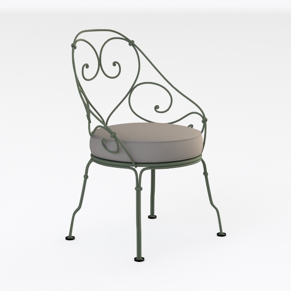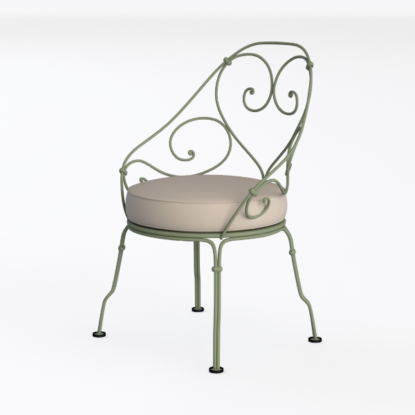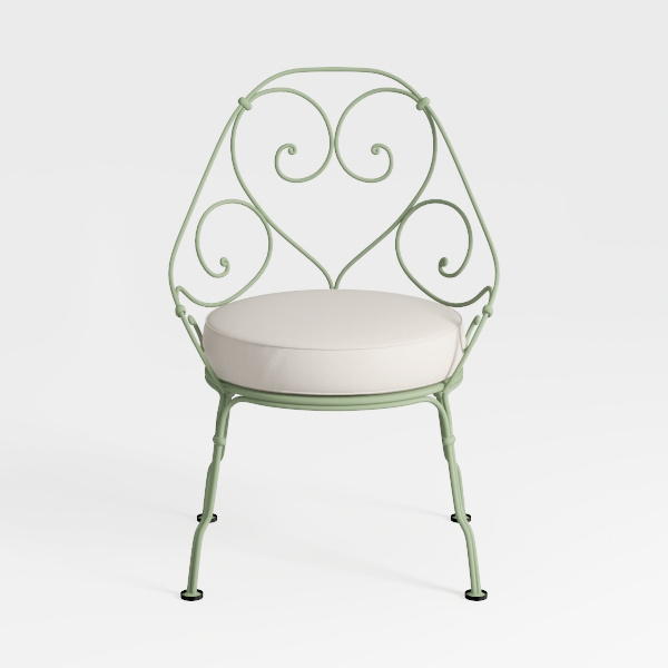 Crafted with inspiration from vintage garden trellises, this chair blends organic curves and timeless charm. The soft white upholstered seat offers a cozy touch, while the muted sage metal frame exudes a warm, matte texture. Its openwork back and slender legs create an airy, light-filled look, ideal for a cottage-style living room or sunlit garden nook, paired with wooden side tables and potted ferns. Compact yet sturdy, it balances style and practicality for daily use.