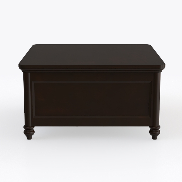 Inspired by classic furniture lines, this dark wooden storage chest features a smooth, polished surface with subtle grain, exuding warmth and solidity. Its rectangular top, elegant turned legs, and clean front panel add refined charm, ideal for vintage or traditional living rooms. Pair with leather sofas and woolen rugs, offering ample storage for essentials, blending style and practicality.