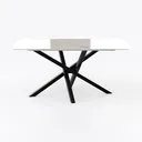Inspired by minimalist design and natural stone patterns, this table features a smooth, cool marble top with subtle veining, while matte black metal legs add industrial elegance. Spacious enough for meals or gatherings, it pairs beautifully in modern dining or living spaces with warm wood chairs and soft ambient lighting, and the sturdy cross-leg structure ensures stability with a sleek, uncluttered look.