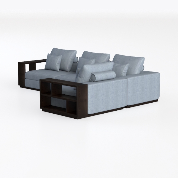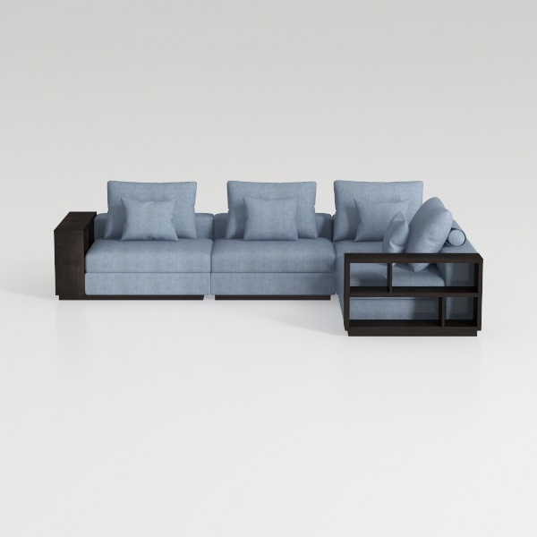 Crafted with a focus on minimalist elegance and functional living, this modular sofa draws inspiration from the clean lines and spatial efficiency of contemporary Scandinavian design, reimagining comfort for modern homes. The soft, sky-blue upholstery features a textured weave that invites gentle touches, its muted hue balancing warmth with a calm, airy feel—like a breath of fresh air in a busy space. Dark wood accents frame the structure, their rich grain adding depth without overwhelming the lightness of the fabric, creating a harmonious contrast that enhances visual balance.