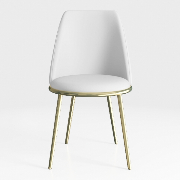 Inspired by Scandinavian minimalism, with soft curves and clean lines, this chair features smooth, matte white upholstery that feels cool to the touch, exuding lightness. Sleek gold metal legs add a touch of luxury, ideal for a modern minimalist dining room or living space, complementing marble tables and warm wooden floors. The ergonomic design ensures optimal comfort during long meals or casual gatherings, with a sturdy yet lightweight structure for easy movement.