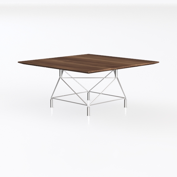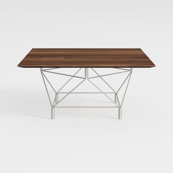 Inspired by mid-century geometric minimalism, this table features a warm, smooth walnut surface with rich grain details and a sleek, brushed steel frame with angular legs. Its balanced, open structure blends warmth and industrial charm. Ideal for a minimalist dining room or living space, pair with soft linen chairs and a statement pendant light. The spacious tabletop accommodates gatherings, while the light yet sturdy frame ensures stability.
