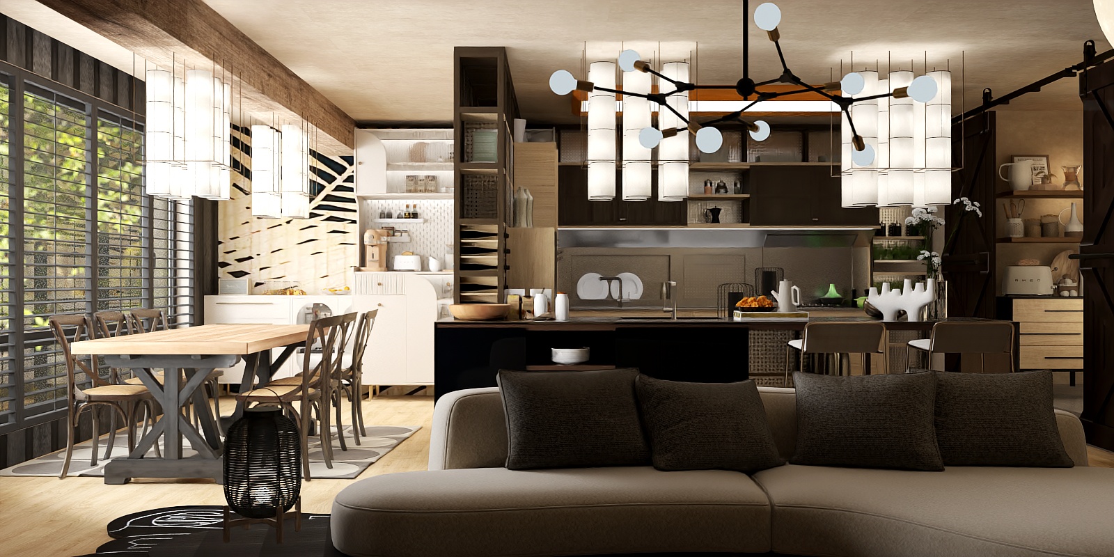Inspired by mid-century modern minimalism, this piece blends functionality with elegance. Sleek matte surfaces and subtle metallic legs create a warm, airy vibe, with light filtering through the perforated upper section. Ideal for a modern minimalist kitchen or dining area, pairing beautifully with marble countertops and brass lighting. Ample storage—closed cabinets, drawers, and open shelves—keeps essentials organized, while the top shelf showcases mugs and kitchen gadgets.