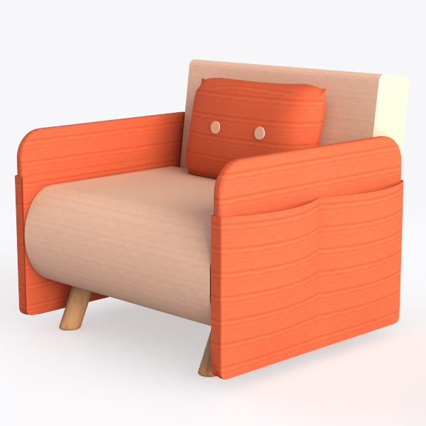 Inspired by the gentle interplay of natural warmth and understated design, this armchair embodies a harmonious blend of comfort and style. The main body features a soft, textured beige fabric that feels lightweight yet durable, inviting a gentle touch, while the vibrant tangerine-orange armrests and backrest add a lively pop of color—creating a balanced visual rhythm that feels both intentional and effortless. Clean, uncluttered lines define its silhouette, with subtly curved armrests and solid oak legs that add a natural, grounded charm.