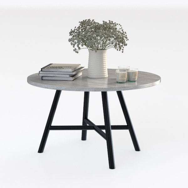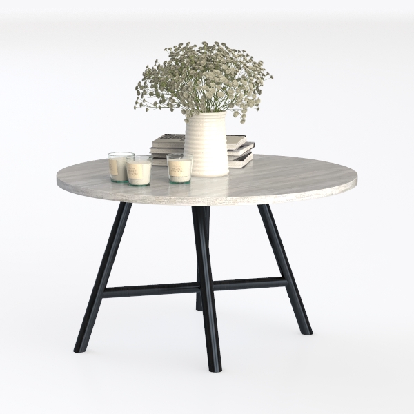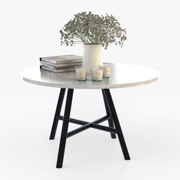Inspired by the blend of natural stone and sleek metal, this round table features a light-toned marble-like top with soft, subtle gray veining. The cool, matte surface feels refreshing to the touch, contrasting beautifully with matte black metal cross legs, creating a clean, minimalist look that brightens the space. Ideal for a modern living room, it pairs with linen sofas, wooden shelves, and minimalist decor, enhancing warmth. A generous tabletop holds books, candles, or daily essentials, with a stable base ensuring durability for casual gatherings.