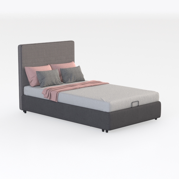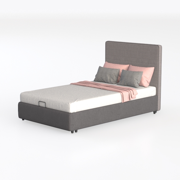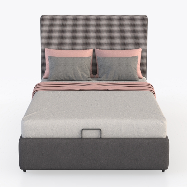 Mid-century modern inspired, this bed blends classic and modern. Gray checkered headboard adds depth, with plush pink pillows offering warm contrast, keeping the room light, airy. Ideal for minimalist/Scandinavian bedrooms, pairs with wooden nightstands and linen curtains. Spacious under-bed storage and oversized headboard provide practicality and cozy support for restful nights.