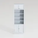 Functionality is key here: the top and bottom cabinets offer enclosed storage for hidden items like blankets, electronics, or kitchenware, while the three open shelves provide easy access to frequently used books, potted plants, or decorative objects. Its compact height ensures it fits seamlessly into small to medium-sized rooms, maximizing vertical space without sacrificing style, making it a versatile choice for both daily use and aesthetic appeal.