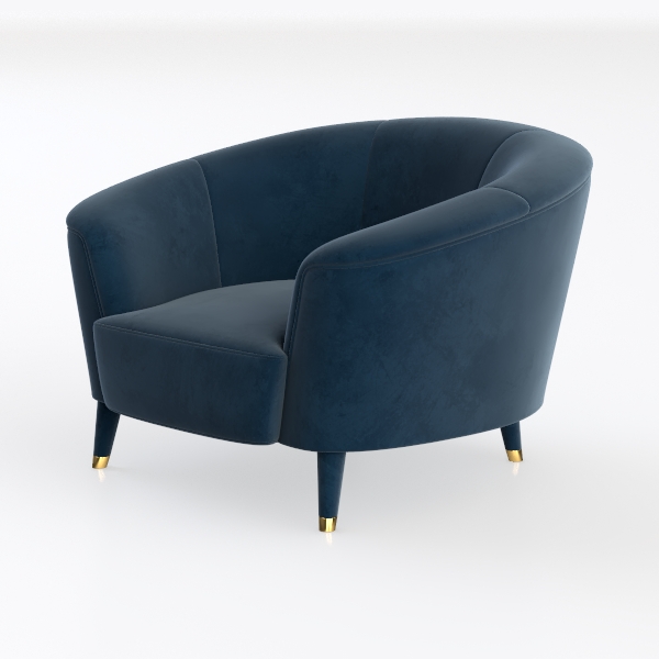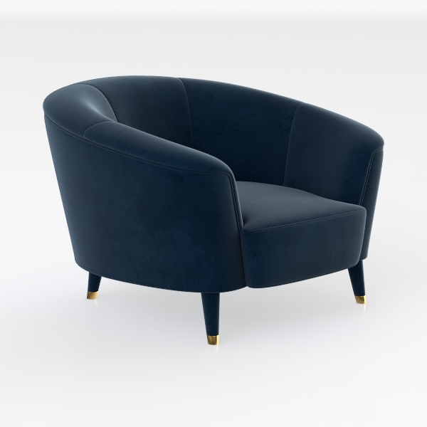 The design draws inspiration from mid-century modern elegance, blending soft, organic curves reminiscent of polished seashells or gently rounded droplets with contemporary minimalism. Crafted with a sumptuous navy upholstery—likely a plush velvet or crushed velvet fabric—it offers a luxuriously soft, velvety touch, inviting physical connection. The deep, rich blue hue catches light subtly, avoiding heaviness, while the rounded silhouette wraps the body in warm, hug-like comfort, eliminating sharp edges that might feel rigid. Its delicate gold-plated legs add a subtle opulence, elevating the piece beyond basic functionality.