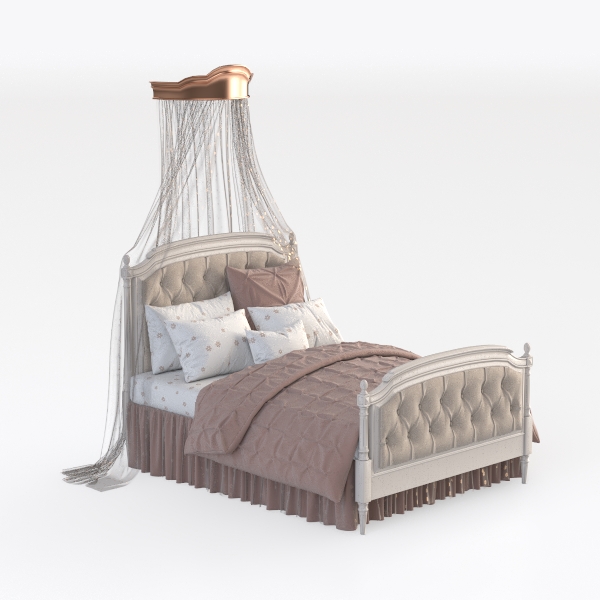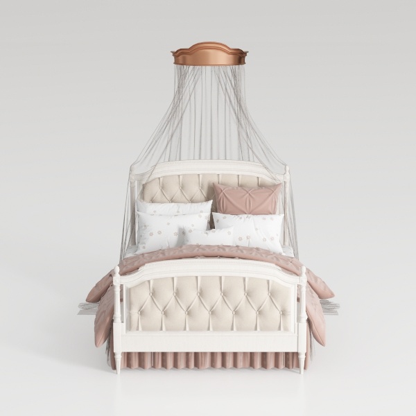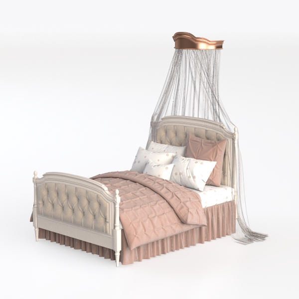 Inspired by classic French elegance, this bed blends soft romance with timeless charm. Its creamy, tufted upholstered headboard and footboard offer a tactile mix of softness and structure, while the sheer white canopy adds a dreamy, ethereal layer. Perfect for a cozy, elegant bedroom, it pairs with warm wood tones and soft lighting, with the tufted design ensuring both style and supportive comfort.