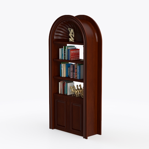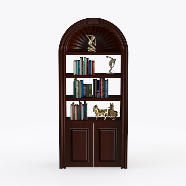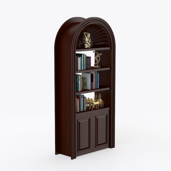 Inspired by classical architectural arches, this piece blends timeless elegance with practicality. Rich, dark wood with smooth textures and subtle grain offers a warm, tactile feel, while polished metal accents add sophistication. Ideal for a vintage study or neoclassical living room, pairing beautifully with marble surfaces and antique decor. Multiple open shelves display books and collectibles, with enclosed lower cabinets for hidden storage, balancing style and utility.
