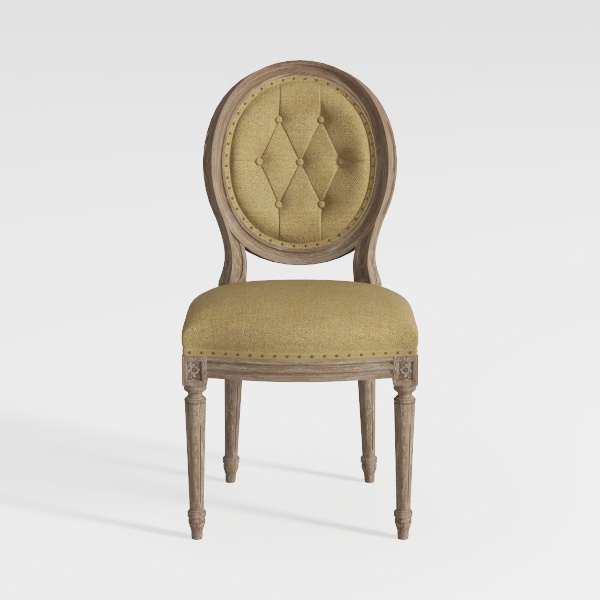 Inspired by classic French country design, this chair blends textured upholstery with diamond tufting for softness, while the weathered wood frame adds timeless warmth. Perfect for dining rooms or living areas, pair it with rustic wooden tables and vintage brass accents. The curved back and padded seat offer excellent support, enhancing cozy, elegant spaces.
