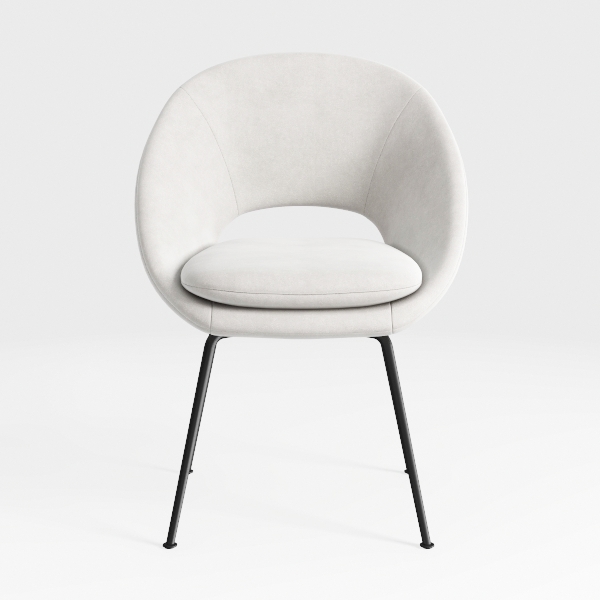Designed with organic curves, this armchair blends minimalist elegance and cozy comfort. Its light gray upholstery feels soft and warm, with smooth lines creating an airy, uncluttered look. Perfect for modern living rooms or home offices, it pairs beautifully with marble side tables and black metal lamp bases. A generous seat depth and plush cushioning offer exceptional comfort, making it both stylish and functional.