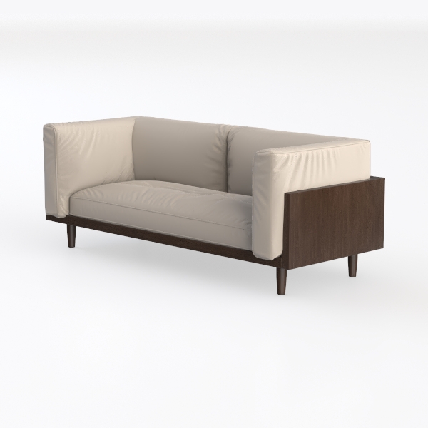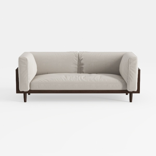 This sofa draws inspiration from Scandinavian design, blending simplicity with organic warmth to create a piece that feels both modern and inviting. Its light-gray upholstery, with a soft, textured weave, invites gentle touch, while the dark wooden frame—smooth and polished—adds rich, grounding contrast. Clean lines and a neutral palette craft a serene, uncluttered aesthetic, making it a versatile fit for various interiors.