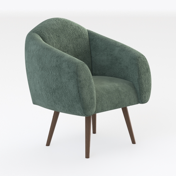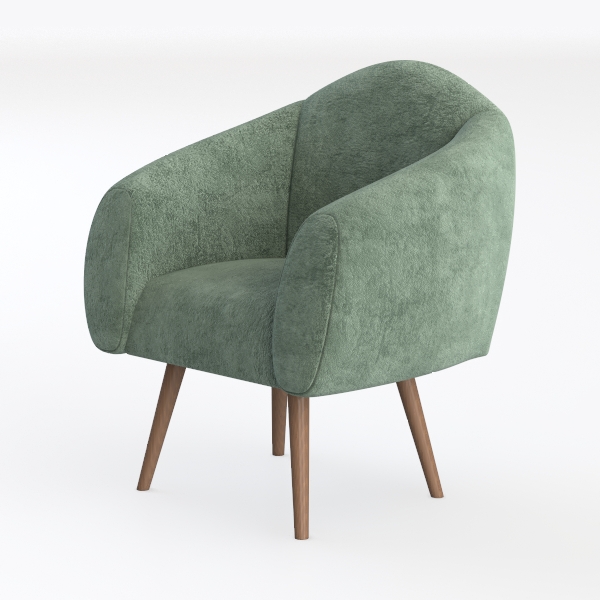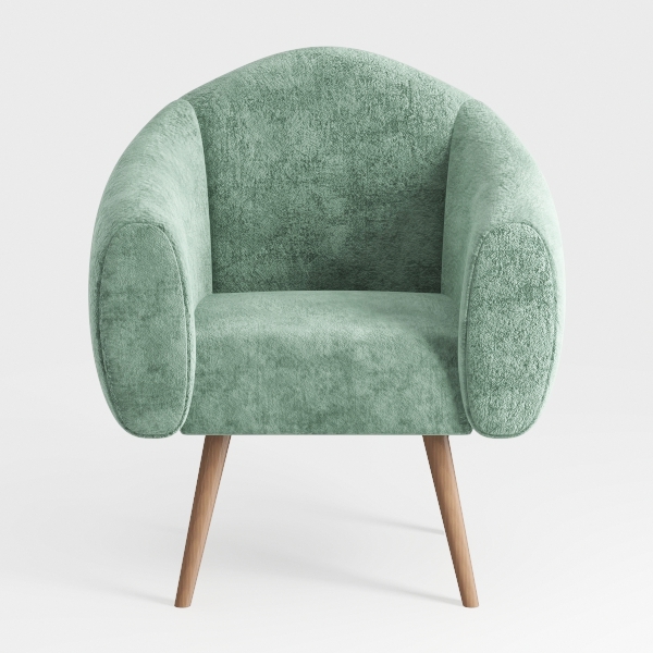 Inspired by organic curves and mid-century warmth, this armchair features a plush, velvety mint green upholstery that feels soft to the touch, creating a calming, inviting vibe. Its rounded back and wide armrests offer gentle support, while slanted wooden legs add mid-century charm. Perfect for a modern living room or cozy reading nook, pairing beautifully with marble side tables and woven rugs for a fresh, curated look.
