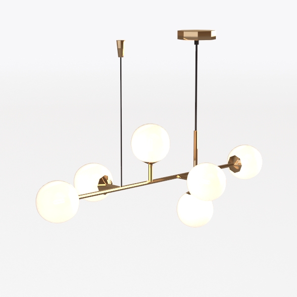 DORESshop 7-Light Modern Brass Linear Chandelier, Adjustable Mid Century Globe Chandelier with Milk White Glass for Living Room, Kitchen Island, Dining Room Light Fixture