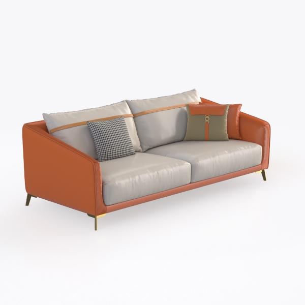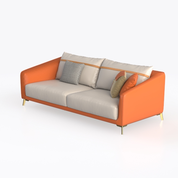This elegant sofa blends contemporary aesthetics with a touch of warm sophistication. Its design draws inspiration from the harmonious interplay of bold color and soft form, evoking the cozy charm of a sunlit afternoon in a curated interior space. The frame features a rich, buttery-soft orange upholstery that feels surprisingly lightweight yet durable, while the wide, cloud-like white cushions offer a plush, inviting surface—perfect for sinking into after a long day. The slim, gold-tone legs add a subtle luxury, lifting the piece to feel both grounded and elevated, with a clean, geometric silhouette that complements modern and mid-century modern styles alike.
