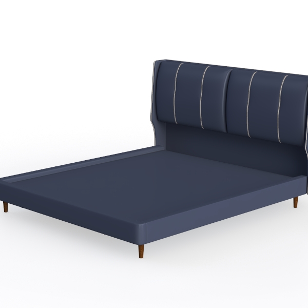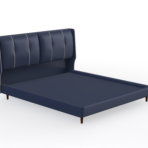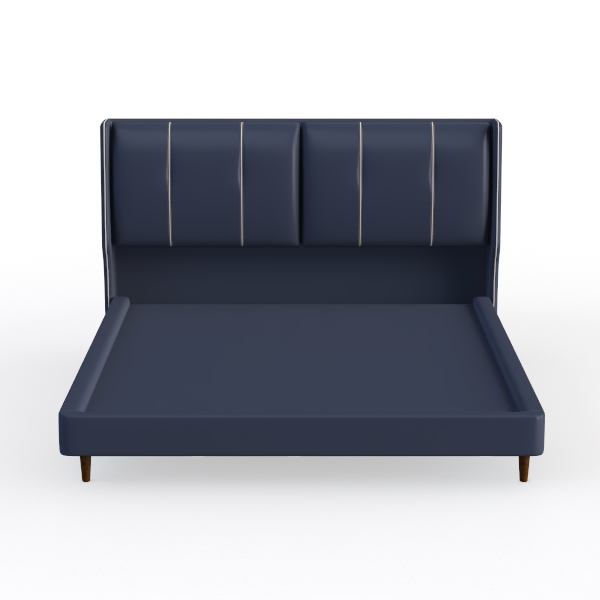 Inspired by mid-century modern design, this bed has a deep navy leather headboard with vertical stitching, blending contemporary minimalism and timeless elegance. The soft yet sturdy leather texture, paired with clean lines and rich hue, creates a luxurious yet warm vibe. Ideal for a modern or cozy master suite, it works beautifully with light wood furniture and soft linen bedding. A spacious headboard offers great back support, while the sturdy frame with slim wooden legs ensures stability, making it a restful retreat.