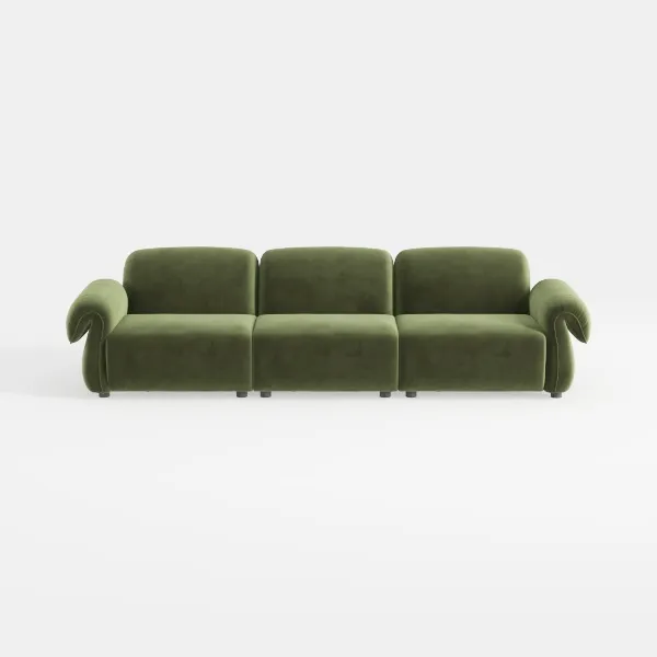 Crafted from organic curves and mid-century design principles, this sofa embodies calm sophistication with timeless charm. Inspired by natural forms, its silhouette balances playful warmth and understated elegance—rounded armrests and a streamlined three-segment design feel approachable, while the low, grounded stance keeps the piece stable and uncluttered.