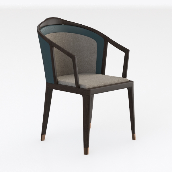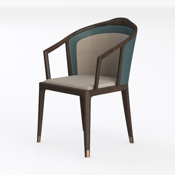 Inspired by organic curves and mid-century minimalism, this chair features a warm walnut frame with smooth, textured upholstery and a teal trim, creating a blend of softness and warmth. Ideal for a modern dining room or living space, pairing effortlessly with marble tables and brass accents, its plush seat cushions offer exceptional comfort, while the curved backrest provides gentle lumbar support.