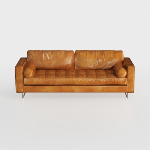 This sofa draws inspiration from mid-century modern design principles, reimagined with contemporary minimalism to balance nostalgia and modern living. Its warm caramel leather, with a soft, natural grain, catches light gently, casting a rich, inviting glow that evokes the cozy warmth of well-cared-for vintage pieces, while its clean lines and streamlined silhouette keep it fresh and uncluttered.