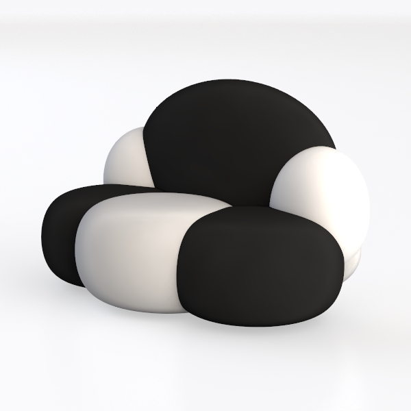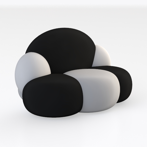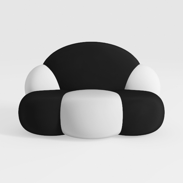 Inspired by the soft, billowy forms of natural clouds and organic shapes, this sofa blends minimalist elegance with a touch of playful whimsy. Its silhouette, with gently rounded edges and a balanced interplay of curves, feels both modern and timeless. The visual appeal lies in the striking contrast of matte black and smooth white upholstery—clean lines and soft shadows create depth, while the absence of sharp angles ensures a warm, inviting presence.