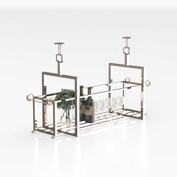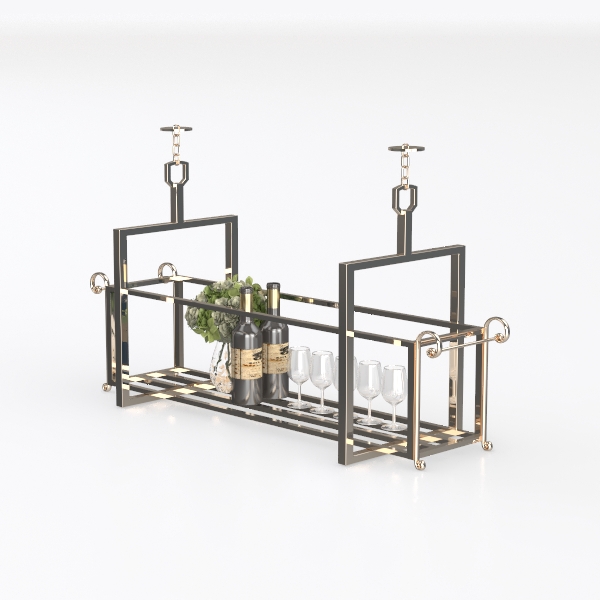 Inspired by vintage metalwork reimagined for modern spaces, this wine rack features sleek metallic frames with polished edges and curved accents. Its glossy surface catches light, while clear glass shelves cradle a wine bottle, stemmed glasses, and a fresh floral arrangement, blending elegance and practicality. Ideal for modern-luxe dining corners or living rooms, pairing with marble or wood, it balances style and utility with sturdy hooks and tiered storage.