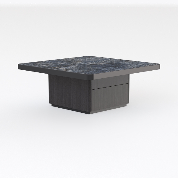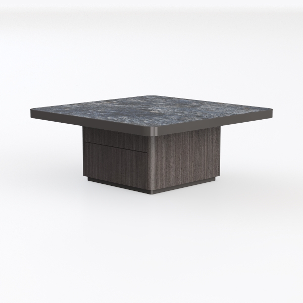 Inspired by the fluid motion of ocean waves, this table features a sleek, polished surface with intricate blue and gray veining that mimics natural stone, catching light to create subtle depth. Ideal for a modern-luxury living room, pairing beautifully with matte leather sofas and geometric metal side tables. A spacious lower shelf with a smooth, dark wood finish offers hidden storage, balancing elegance with practicality.