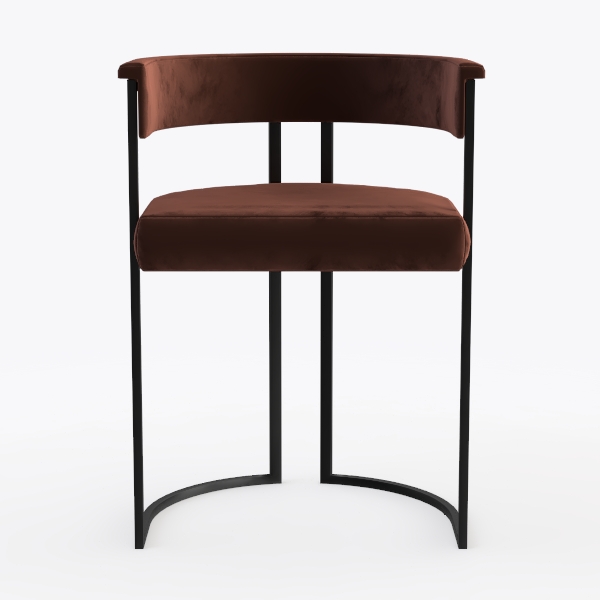 Inspired by mid-century modern design, blending warm vintage charm with sleek contemporary elements, this bar stool features rich velvet upholstery that feels luxuriously soft and smooth. The matte black metal frame adds a cool, structural contrast, perfect for modern minimalist or industrial kitchens and bars—pair with marble countertops or wooden islands. Its contoured backrest and wide, padded seat ensure exceptional comfort, with a sturdy metal base for stability.