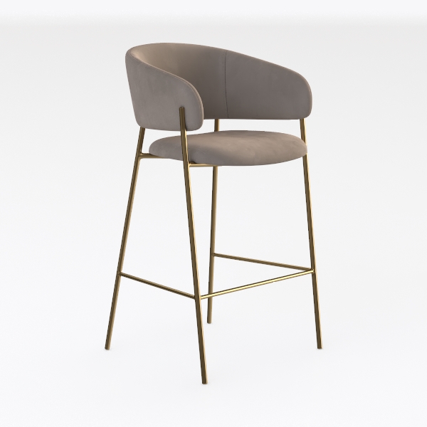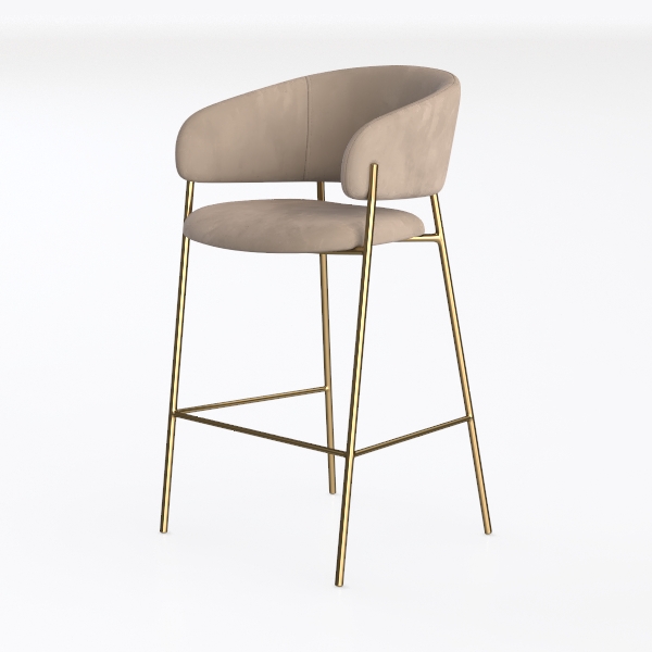 Inspired by the harmony of soft forms and clean lines, this bar stool blends Scandinavian minimalism with subtle luxury. Its soft, velvety taupe upholstery in a warm neutral hue feels incredibly comfortable to the touch, paired with a sleek gold metal frame that enhances its modern elegance. Perfect for a contemporary kitchen island or cozy home bar, it pairs beautifully with marble countertops and copper accents, adding sophistication to any space. The ergonomic backrest ensures all-day comfort, with a sturdy base and ideal seat height for daily use.