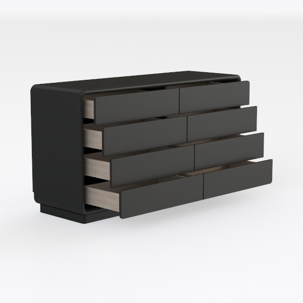 Inspired by minimalist design, this piece boasts clean, uncluttered lines and a smooth matte black surface. Its polished finish offers a cool, tactile feel, while six integrated drawers slide effortlessly, providing ample storage. Ideal for modern bedrooms or living rooms, it pairs beautifully with neutral tones and wooden accents, blending functionality with sleek elegance.
