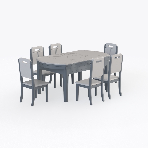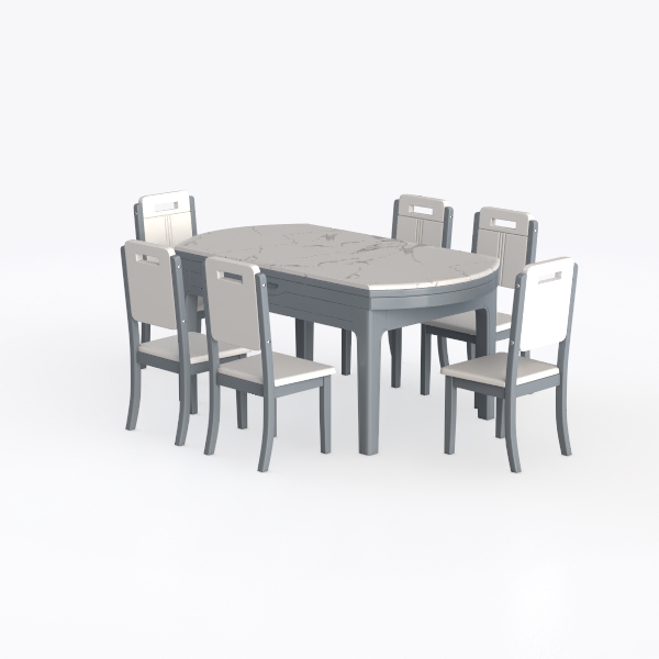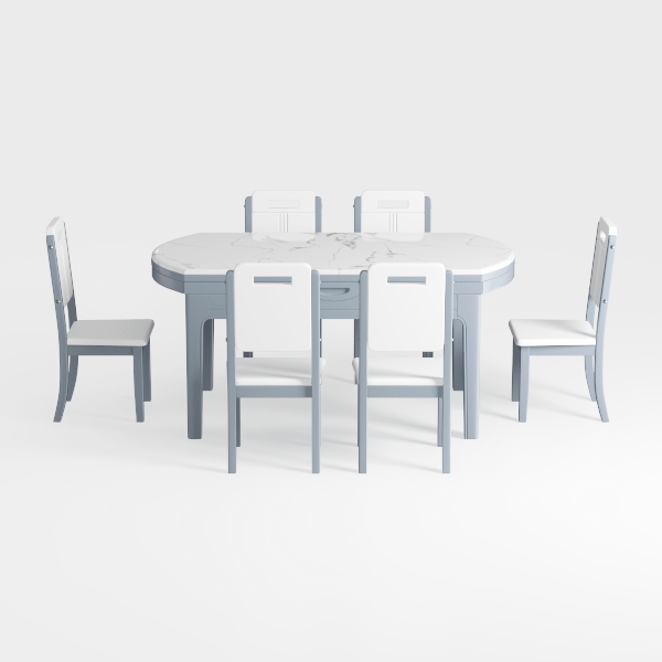 Inspired by the blend of natural stone textures and minimalist lines, this dining set combines a smooth, veined marble-like tabletop with sleek light gray frames. Soft upholstered white chairs offer gentle touch, creating a bright, airy visual. Perfect for modern compact dining areas, pair with metallic accents and potted plants. A built-in drawer adds practical storage, ideal for family meals.