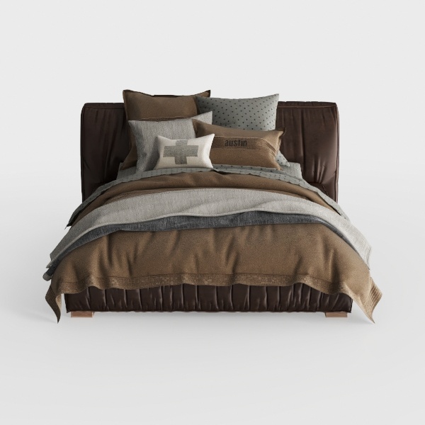 Inspired by natural material fusion, this bed blends smooth, textured leather headboard with soft, drapey bed linens in warm brown-gray gradient, creating a cozy, harmonious vibe. Perfect for modern minimalist or Scandinavian bedrooms—pair with wooden nightstands and potted plants for warmth. A wide headboard offers solid support, soft fabrics ensure ultimate comfort, making it ideal for restful nights.