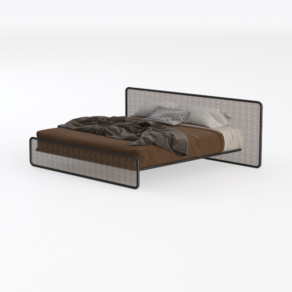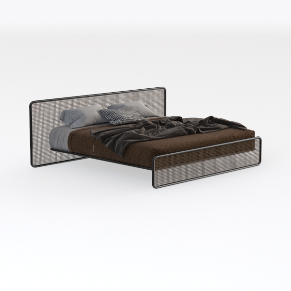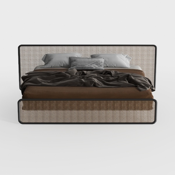 Inspired by natural weaving, this bed features textured woven panels that add soft, tactile warmth, complemented by a sleek black metal frame for modern contrast. It’s ideal for minimalist or Scandinavian bedrooms, pairing beautifully with light wood nightstands and linen bedding. The sturdy, breathable design ensures comfort and stability, making it a serene centerpiece for rest.
