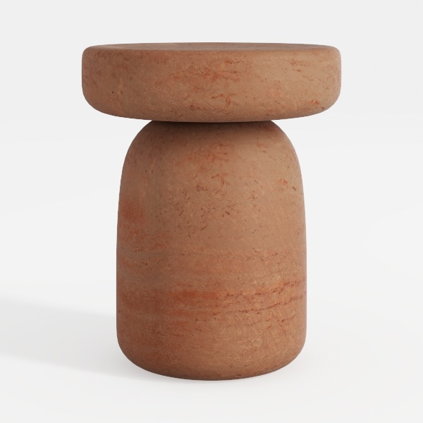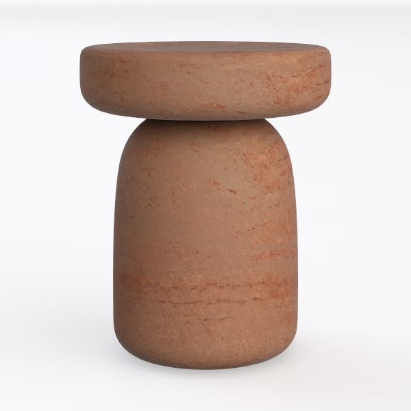 Inspired by natural organic forms, this handcrafted side table showcases a warm terracotta hue and soft, earthy charm. Its textured surface and smooth, rounded silhouette blend rustic warmth with modern simplicity, ideal for modern minimal or bohemian spaces. Perfect for small living rooms, it holds drinks, books, or doubles as a casual seat, adding understated natural elegance.