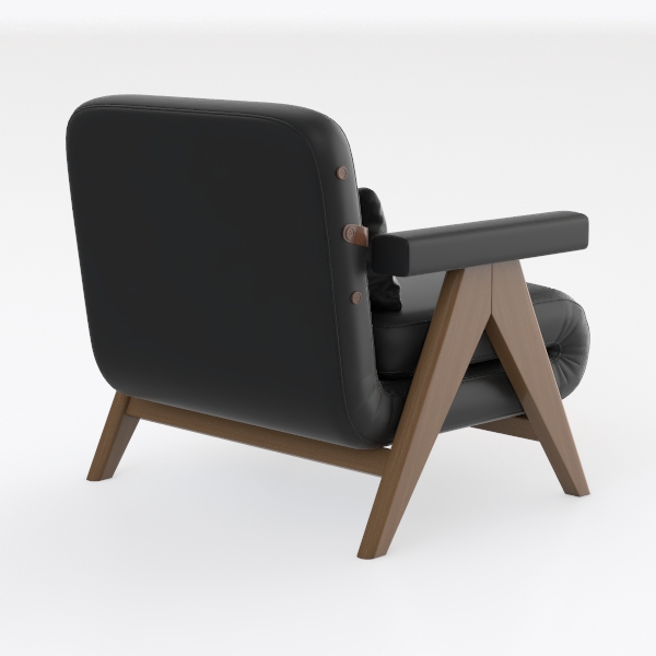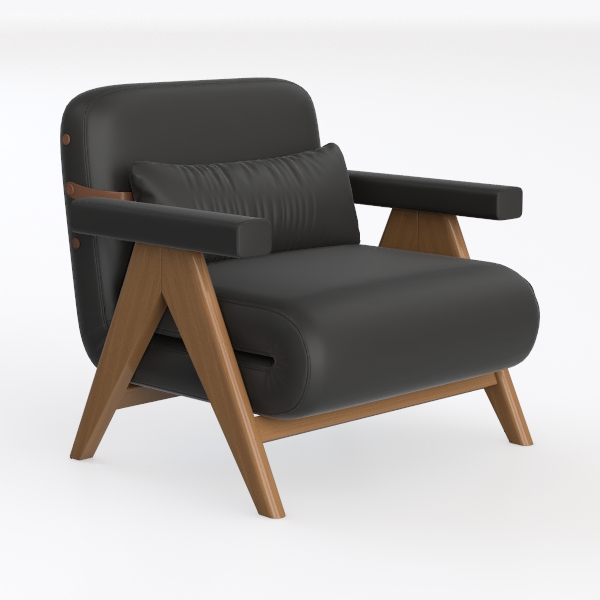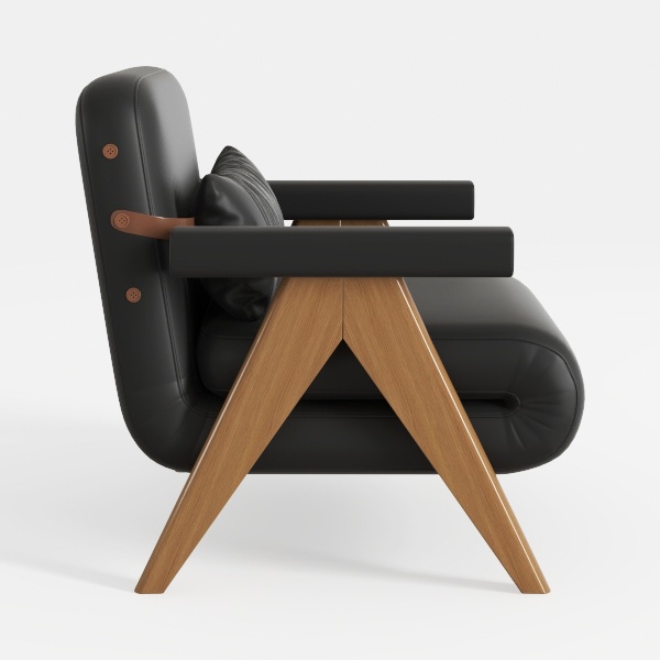 Crafted with mid-century modern flair, this armchair blends geometric precision and timeless charm. Its sleek black leather upholstery offers a soft, tactile feel, while warm wooden X-legs add natural warmth and visual harmony. Ideal for modern, Scandinavian, or minimalist-luxe living spaces, pair with marble coffee tables, metal floor lamps, and neutral rugs. A deep, supportive seat and sturdy frame ensure both style and all-day comfort.