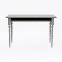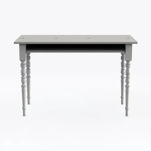 Inspired by classic craftsmanship, blending timeless elegance with modern simplicity. The sleek gray tabletop offers a smooth, cool touch, while white, intricately turned legs add warm, textured detail, balancing lightness and sturdiness. Ideal for a study nook or minimalist living room, pairing well with wooden shelves and soft armchairs, with ample surface space for laptops and decor, stable legs ensuring steady support.