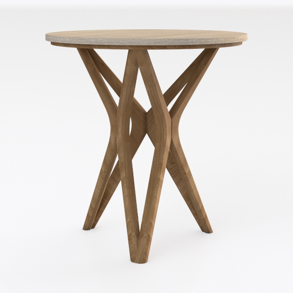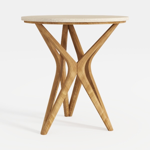 Inspired by natural geometric patterns, blending organic curves with structured support, this piece features warm, smooth oak legs with visible grain, contrasting the cool, polished stone top. It elevates modern minimalism, Scandinavian calm, or mid-century modern spaces—ideal beside a sofa, bed, or console. Sturdy cross-legged base ensures stability, while the compact round top offers space for a lamp, book, or plant, balancing elegance and practicality.