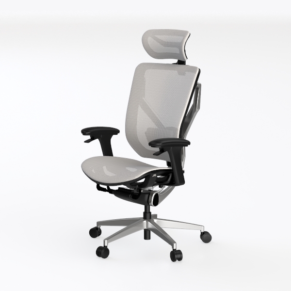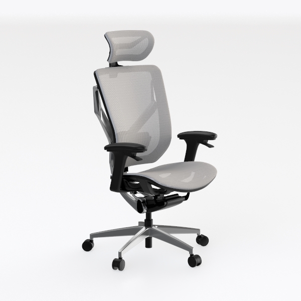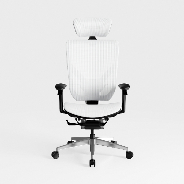 Inspired by ergonomic excellence and minimalist aesthetics, this chair features a lightweight white mesh backrest and seat for breathability. Smooth black armrests and a sleek silver base add a clean, modern touch. Perfect for modern studies or Scandinavian offices, pairing with wooden desks and metallic lamps. Generous seat depth and adjustable headrest ensure exceptional lumbar support, with 360-degree swivel casters for easy movement.