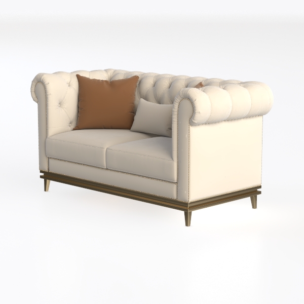 Drawing inspiration from timeless British Chesterfield design, the sofa marries vintage elegance with modern restraint. Its soft, cream upholstery—crafted from a plush, textured fabric—boasts a velvety handfeel, inviting gentle touches and promising lasting comfort. The meticulously stitched tufting across the backrest creates a subtle, sculptural depth, while the curved armrests, lined with delicate gold nailhead trim, add refined detail that catches light softly, enhancing the piece’s warm, inviting glow.