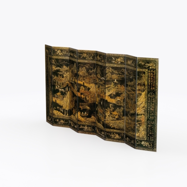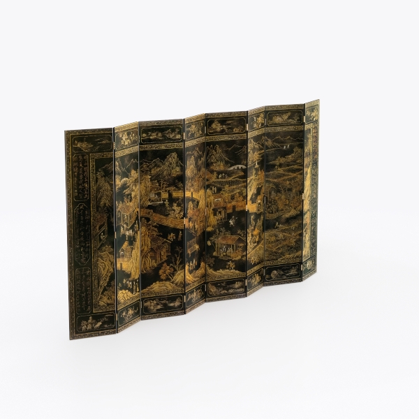 Inspired by classical Chinese ink landscapes and antique screens, this piece features a smooth, glossy black surface with intricate gold carvings of serene villages and mountains. Its rich textures and refined details create a luxurious, timeless look, perfect for traditional or new Chinese-style living rooms/studies, pairing with wooden furniture and porcelain. A versatile divider and focal point, blending elegance and cultural charm seamlessly.