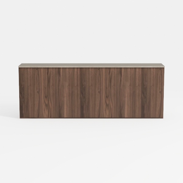 Inspired by the organic warmth of natural wood, this piece blends contemporary minimalism with timeless elegance. Its rich, smooth walnut-like grain and cool, matte top create a tactile contrast, while clean lines and uniform panels offer a cohesive, uncluttered look. Perfect for a modern living room or dining space, it pairs beautifully with neutral sofas and metallic accents, adding both style and hidden storage for a tidy, sophisticated atmosphere.