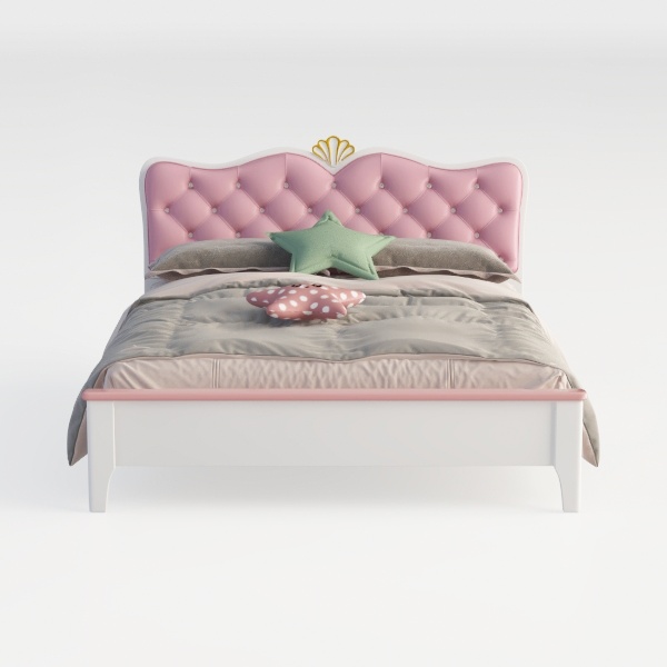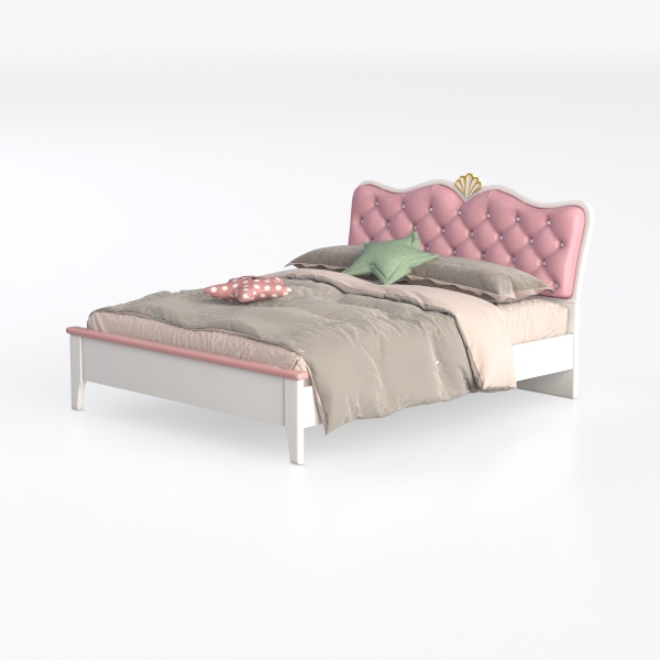 Inspired by fairy tales, its soft pink tufted headboard with a tiny golden crown adds a magical touch. The plush fabric feels gentle to the touch, while the white frame contrasts softly, creating a warm, dreamy vibe. Perfect for a little girl’s room, it pairs beautifully with lace curtains and fluffy rugs, enhancing a sweet, elegant style. Sturdy base ensures stability, and the padded headboard offers cozy back support for reading or relaxing.