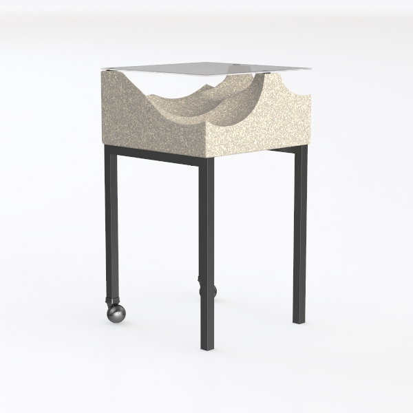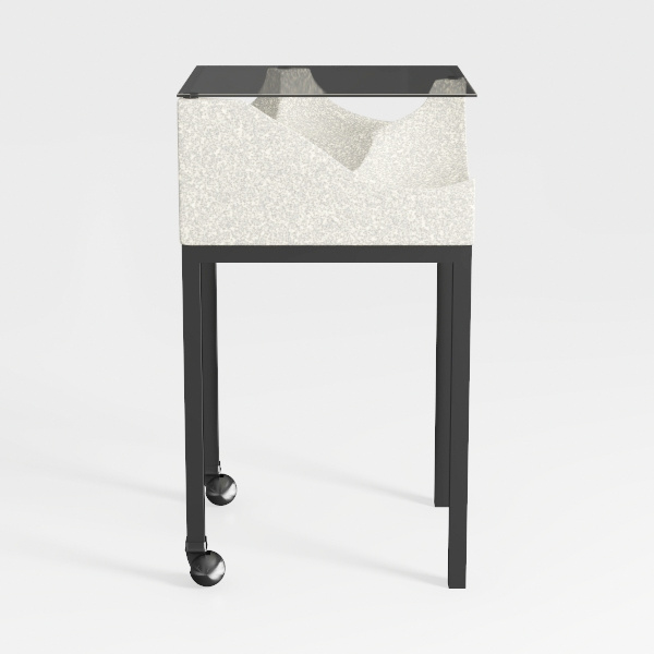 Designed to blend organic warmth with industrial edge, this piece draws inspiration from natural stone formations. Its textured, light-toned surface offers a warm, tactile feel, while the smooth black glass top adds a glossy contrast. Sleek black metal legs support the structure, complemented by swivel casters for easy mobility. Ideal for modern living rooms or bedrooms, it pairs beautifully with minimalist sofas, with a spacious top for decor, lamps, or daily essentials—balancing style and practicality.