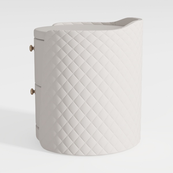 Inspired by timeless geometric patterns and soft curves, this cabinet blends smooth, matte surfaces with subtle quilted textures, exuding understated luxury via soft white hue and sleek, curved silhouette. Ideal for modern, minimalist bedrooms or living rooms, pairing beautifully with warm wood and metallic accents. Spacious drawers provide practical storage, fitting seamlessly beside beds or sofas, balancing function and style.