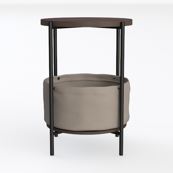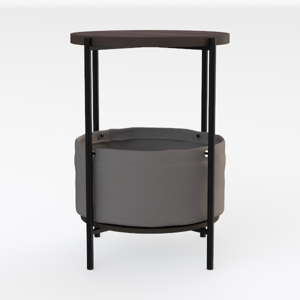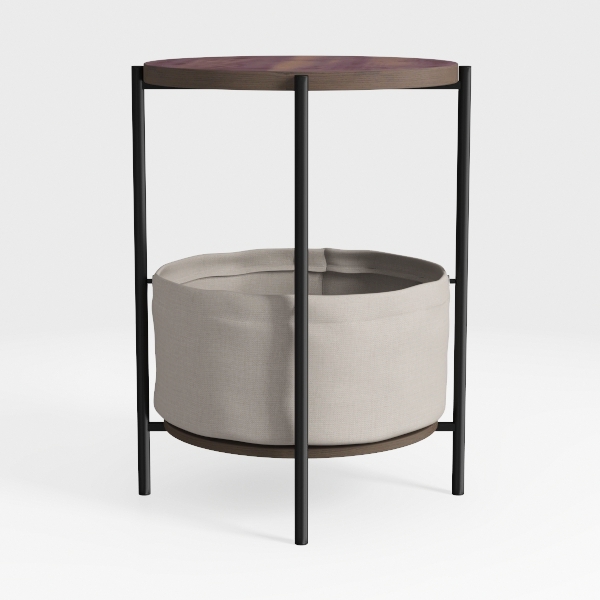 Inspired by minimalist Scandinavian design, blending organic warmth with functional utility. Its warm wooden top exudes natural texture, soft fabric basket offers gentle touch, while sleek black metal frame adds modern edge. Ideal for a cozy bedroom nightstand or living room side table, pairs beautifully with linen sofas and marble decor. Spacious lower basket stores remotes/blankets, upper surface holds drinks/decor, balancing style and practicality.