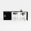 Inspired by the blend of natural stone veining and geometric precision, this piece features a sleek, cool marble countertop contrasting with a textured matte black base. Gold-tone metal legs add subtle elegance, perfect for modern, minimalist living or dining areas, complementing marble accents and metallic fixtures. Spacious surface holds daily essentials, built-in shelving offers hidden storage, and plush upholstered seats ensure comfort during casual gatherings.